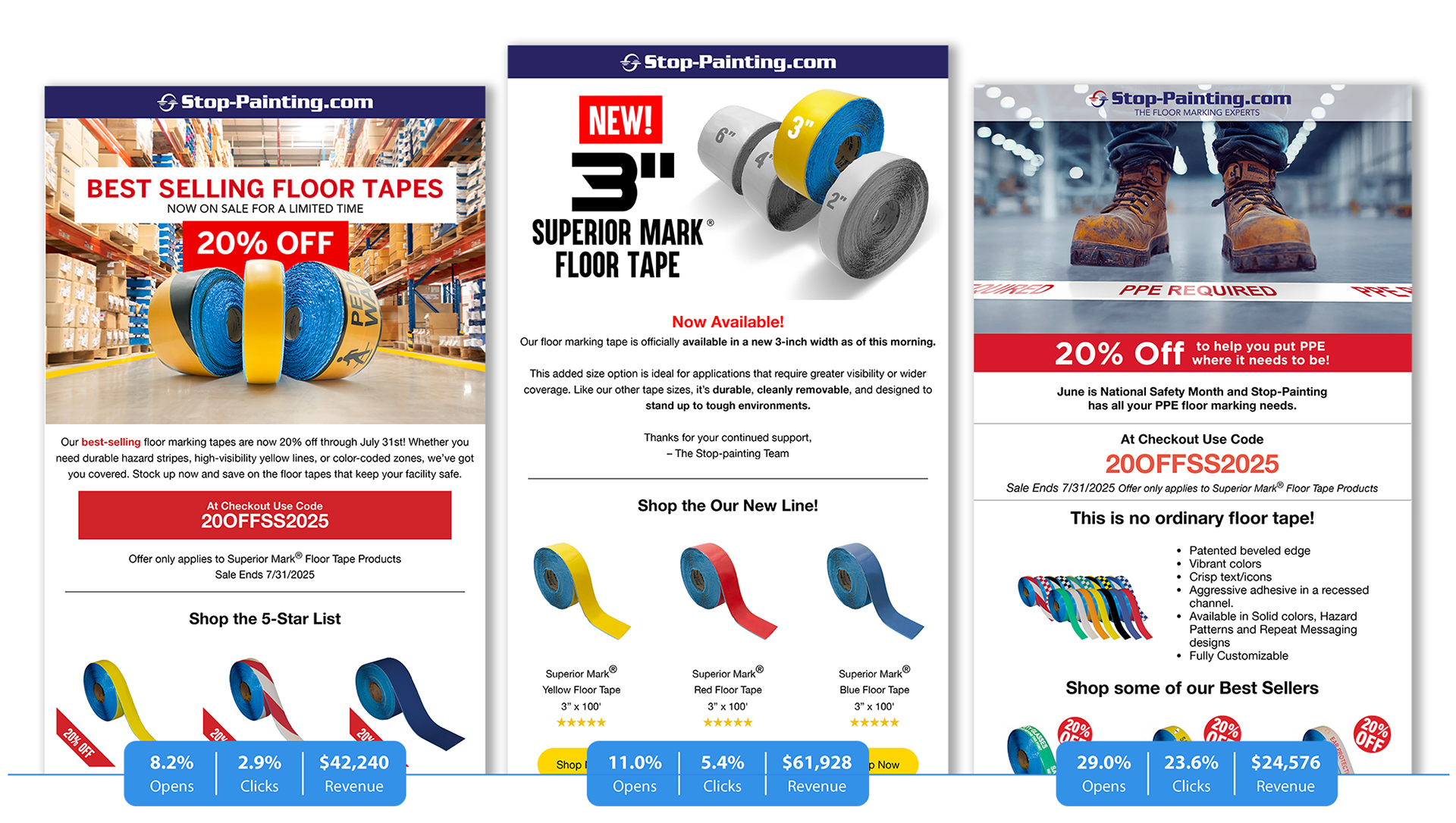 A collection of various marketing materials that were created over the years for Stop-painting. Design collateral ranges but is not limited to catalogs, email marketing, postcards, and trade show materials. Email marketing design include analytics from a financial point of view as well.